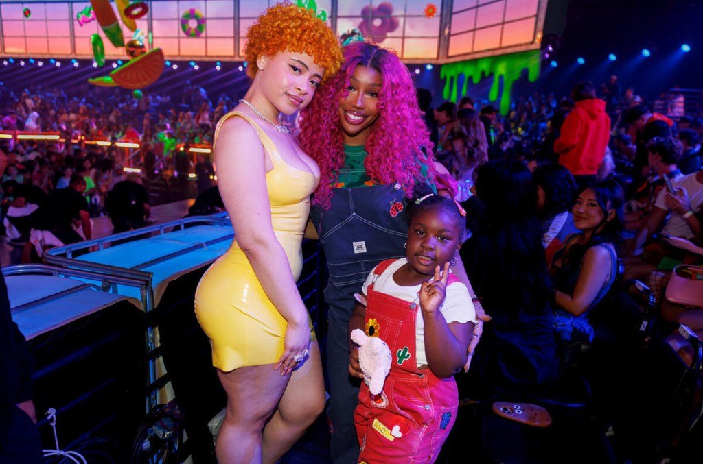 Ice Spice, Yoonchae Jeong and Lara Raj at Nickelodeon 2025 Kids’ Choice Awards at Barker Hangar on June 21, 2025 in Santa Monica, Calif.