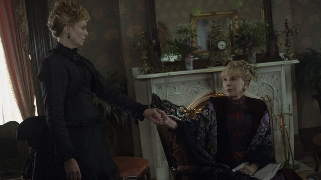 In a ploy to hide his homosexuality, Oscar (Blake Ritson), Agnes’ only child, squandered his mother’s wealth pursuing a marriage with Maud Beaton. Just as the family, which also includes Agnes and Ada’s niece Marian Brook, was packing up their treasured 61st Street mansion for sale, Ada discovered that her minister husband Luke Forte (Robert Sean Leonard), whom she buried too briefly after they wed, was not the man of moderate means she presumed. As his widow and sole heir, she became the wealthier sister. But, as the cliché goes, old habits are hard to break for Agnes — and this new reality is at the center of episode one. Prior to the season three premiere, Gilded Age creator Julian Fellowes explained why with a group of invited press.