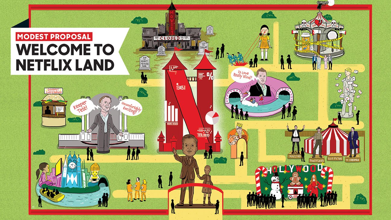 As they enter the park, visitors will be greeted by Ted and Eleven. They are holding court in front of Netflix Castle, where the streamer keeps its data in the highest turret. How many people have watched your show? Who knows! Not you and not your agent, that’s for sure.